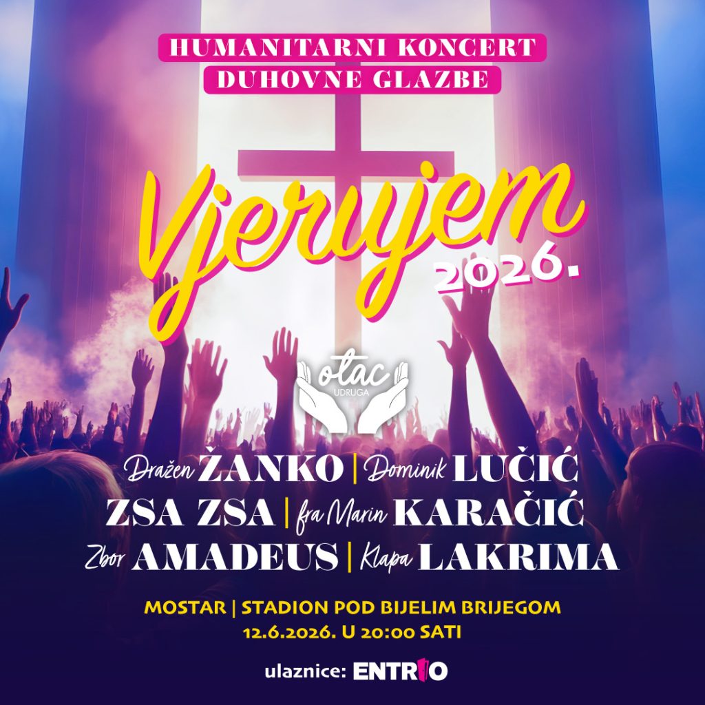Mostar će 12. lipnja ponovno postati središte glazbe, vjere i zajedništva. Humanitarni koncert duhovne glazbe “Vjerujem 2026”, koji organizira Udruga Otac, održat će se s početkom u 20:00 sati, s jasnim ciljem – prikupljanje sredstava za nastavak i proširenje rada Centra za djecu s teškoćama u razvoju.