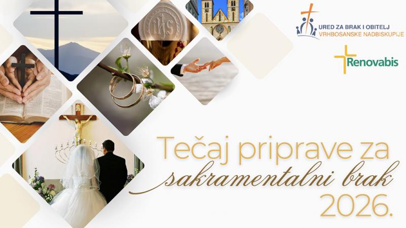Ured za brak i obitelj, u suradnji s Centrom za savjetovanje Vrhbosanske nadbiskupije, organizira i u 2026. ciklus tečajeva priprave za sakramentalni brak po raznim dekanatima Vrhbosanske nadbiskupije.